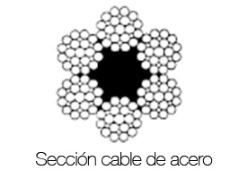 Los cables de acero se utilizan en las instalaciones con tracción diferencial y están dimensionados para soportar el peso de la cabina y el chasis. Debido a las fuertes solicitaciones a las que están sometidos, presentan una configuración especial.