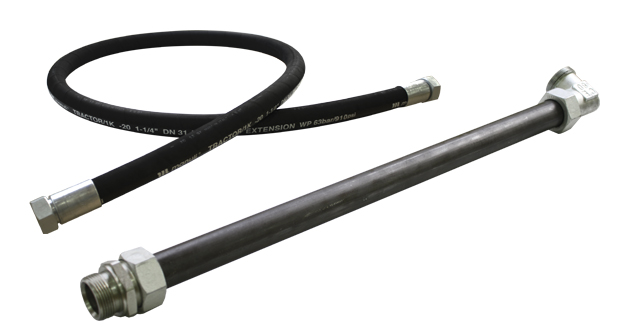 Conducción flexible con goma sintética interior revestida con una o dos mallas en espiral metálicas de máxima resistencia con una capa exterior de goma sintética. Longitudes disponibles de 4 a 12 mts.