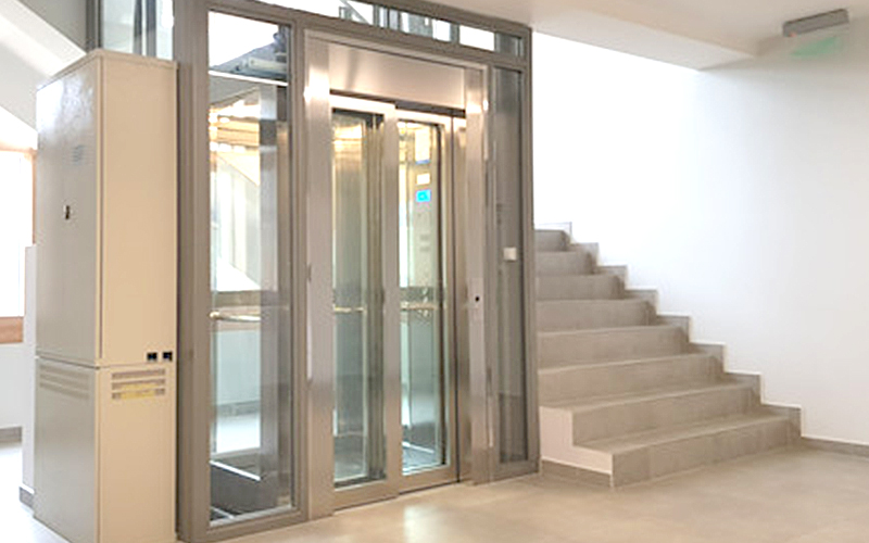 Los elevadores sin cuarto de máquinas pueden ubicar la central hidráulica y el cuadro de maniobras en el foso o en un armario especial integrándose en la casa.